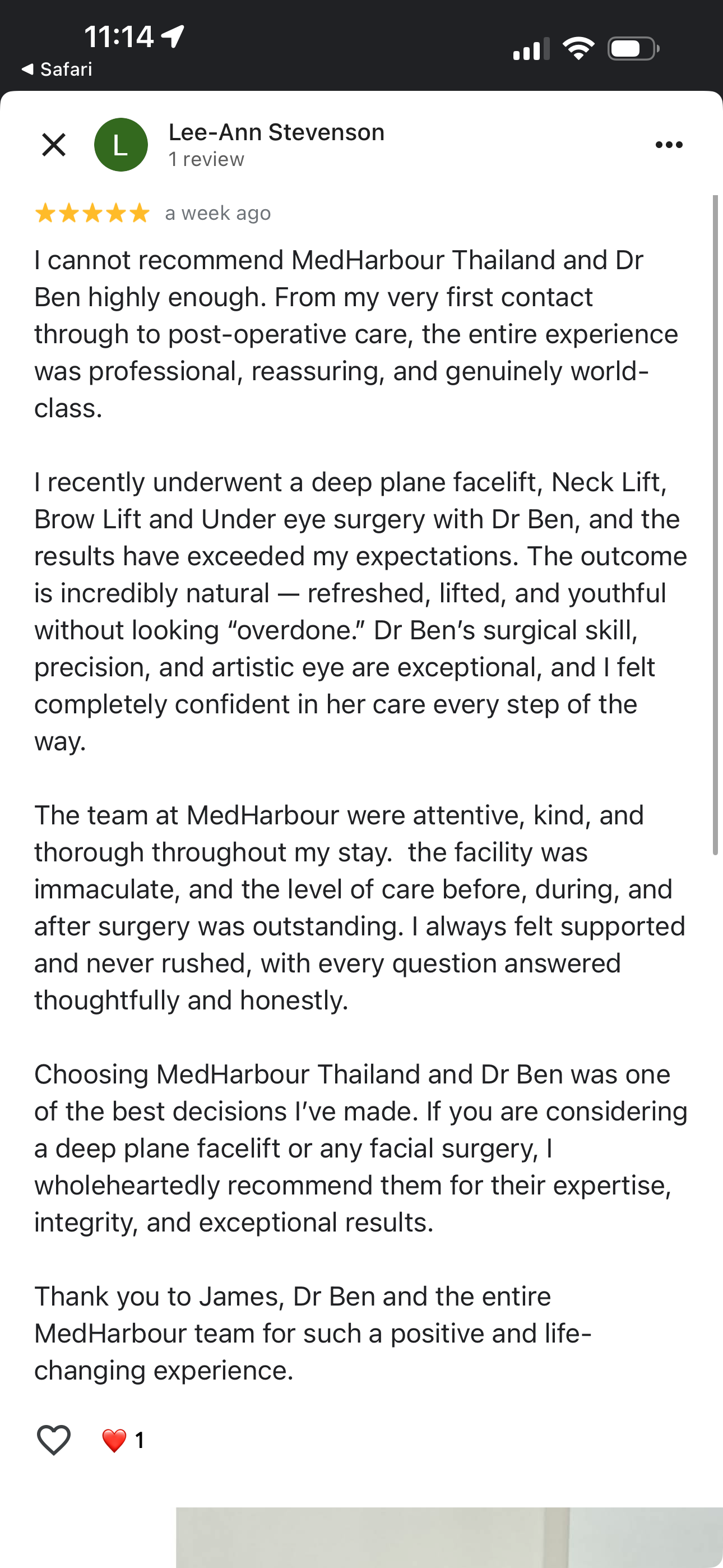 That journey led her to Dr. Ben and MedHarbour Thailand, where artistry meets surgical excellence.