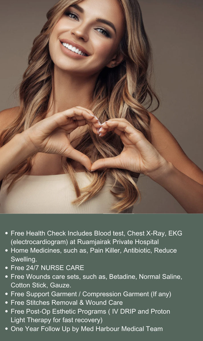 Don't worry that you will be left alone because we have 24/7 assistant & Certified Nurse to take care of you during post precedure period or recovery. Or if you want to go anywhere in Bangkok for shopping or sightseeing, just let us know!