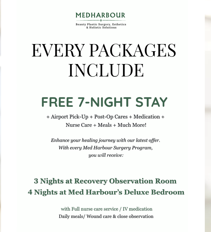 World-class results with elite post-op care that makes all the difference. Transform beautifully. Recover safely. Feel truly cared for. Discover exclusive deals, unbeatable discounts, and premium perks only at Med Harbour where beauty meets excellence!